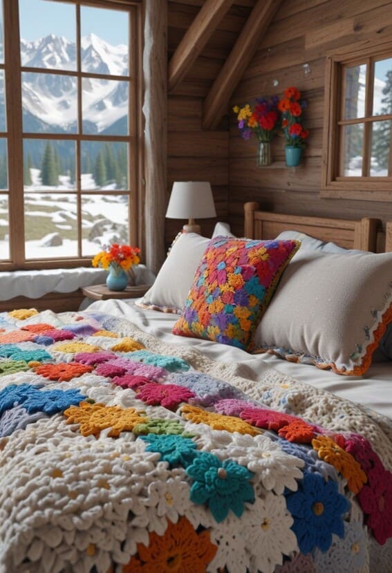 Choose yarns that reflect the blooming of flowers and clear blue skies to make an afghan that’s not just warm but also an impressive piece of art.