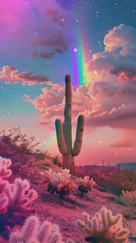 Vibrant Home Screens: Cactus wallpapers work beautifully with app icons, offering a balance of bold visuals and functionality. Their earthy tones and natural textures provide a clean, organized feel.