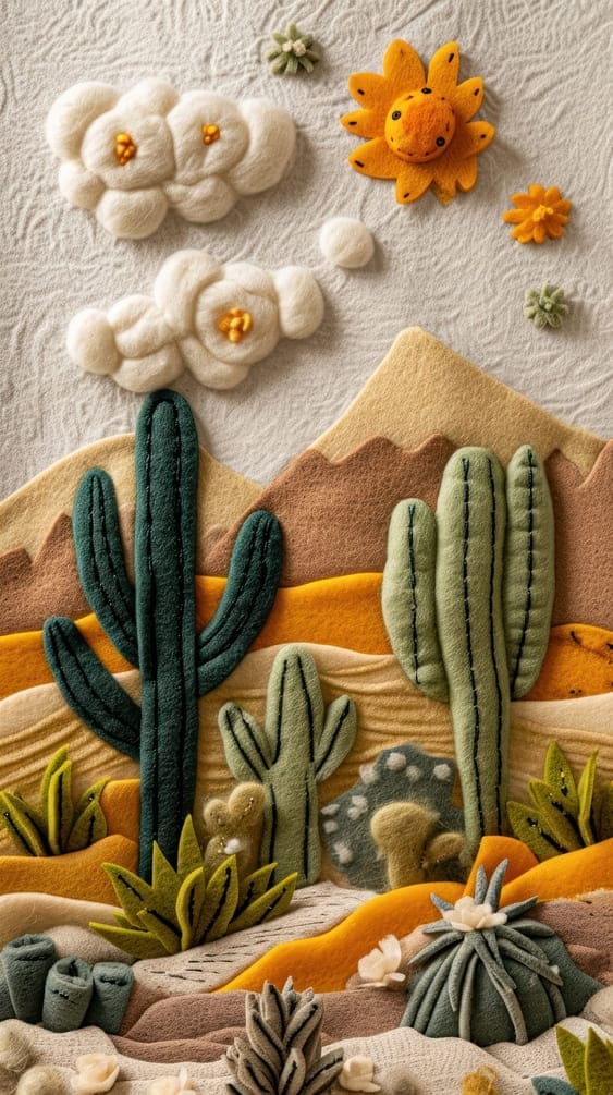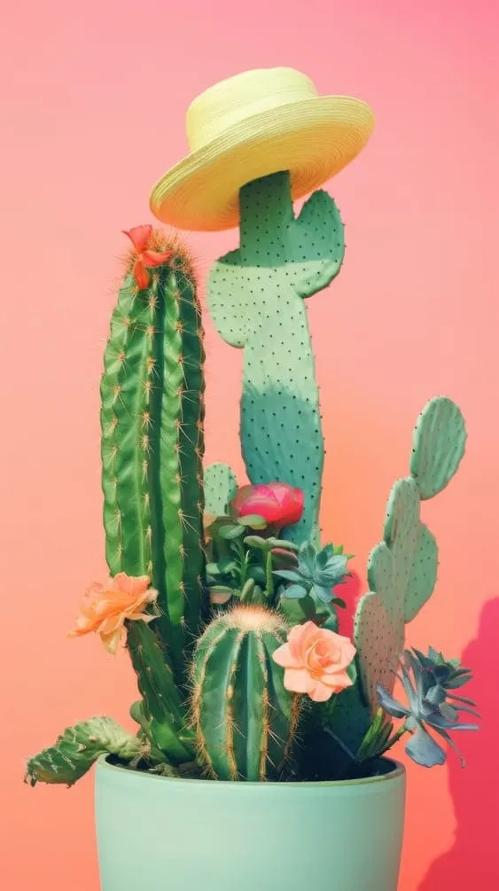 Playful Patterns: Cacti paired with fun shapes or colors.