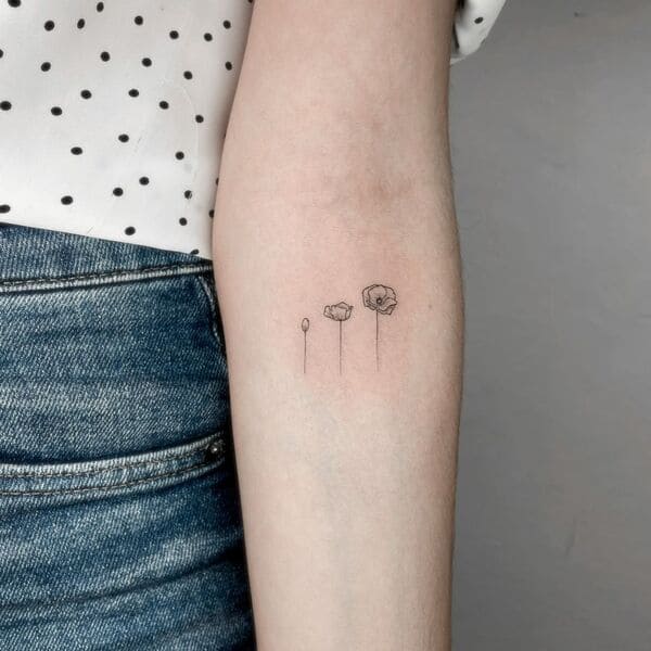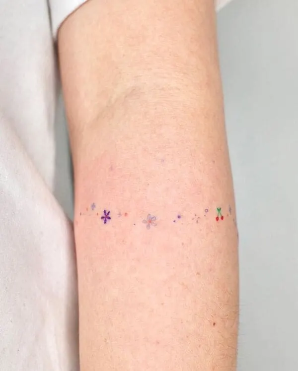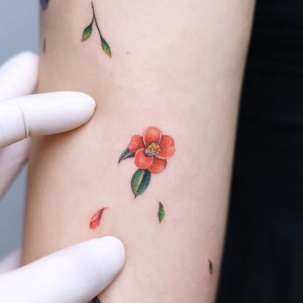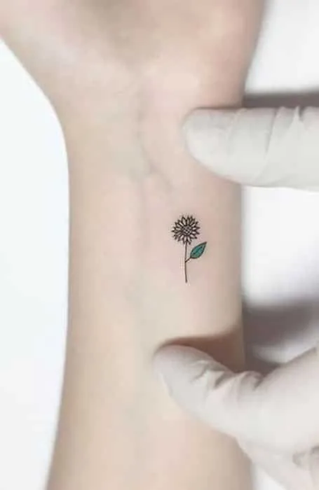 You can always add in some added bright colors to make your small tattoo pop, like this little dainty flower tattoo idea.