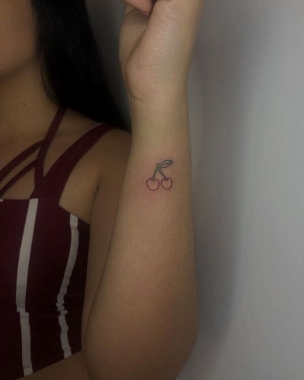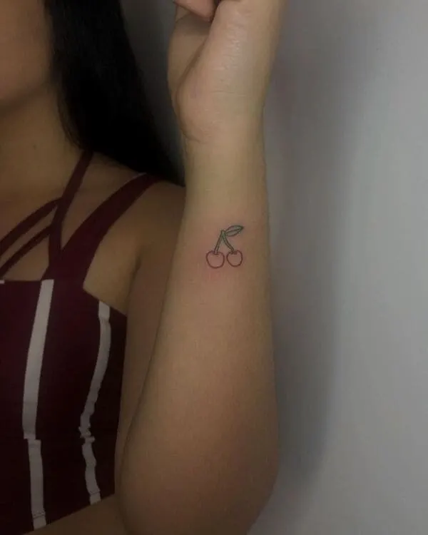 Cherries with a little bit of added color make this a fun tattoo idea.