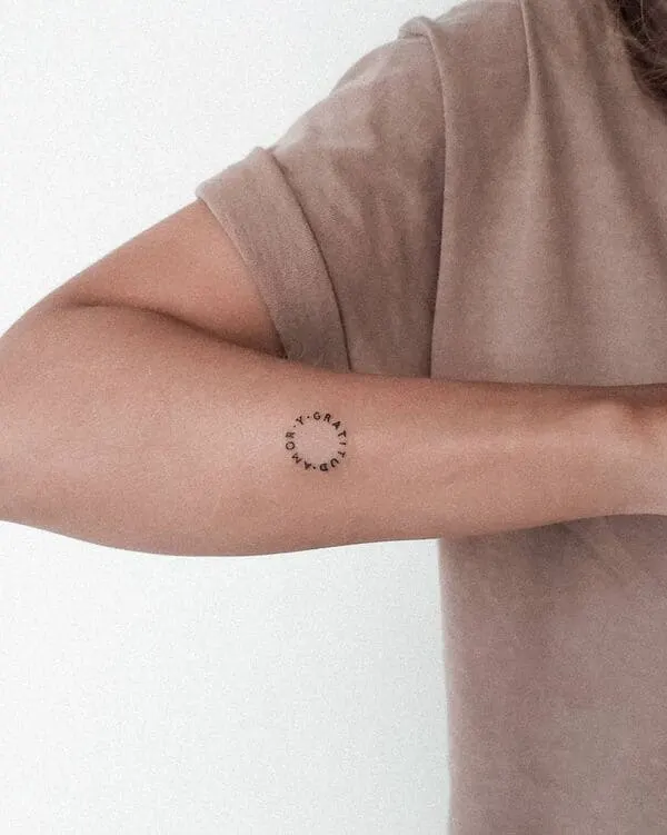 Don’t be afraid to play with unique shapes when it comes to small tattoos. Small tattoos can be shaped in so many amazing ways like this gratitude circle tattoo.
