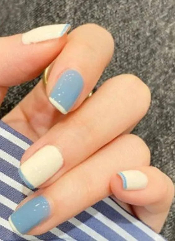 The french tip nail design is based on the idea that the tip of the nail should be painted in a complementary or opposite color to the base of the nail, to give the illusion of longer nails.
